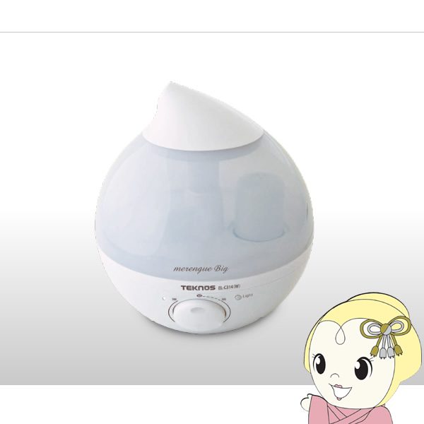 ■加湿器 超音波式 しずく型 テクノス 3.6L LED メレンゲ big Ag+カートリッジ EL-C314-W ホワイト