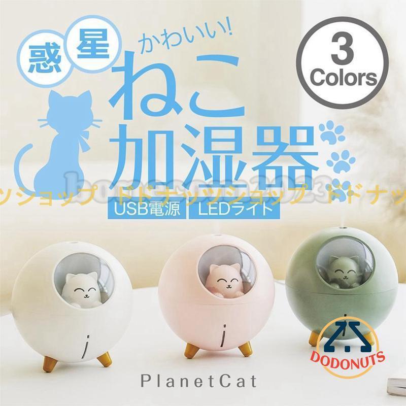 ■加湿器 卓上 おしゃれ オフィス 事務所 アロマ USB かわいい 静音 LEDライト 小ぶり プレゼント ギフト 個性的 丸形 猫 ねこ パステル ミ