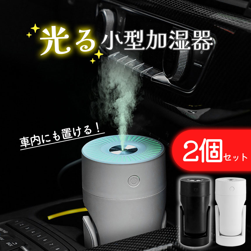 ■加湿器 上部給水 2個セット LEDライト 卓上 車 コンパクト 小型 アロマウォーター お手入れ簡単 オフィス 寝室 子供部屋 車用おしゃれ 卓