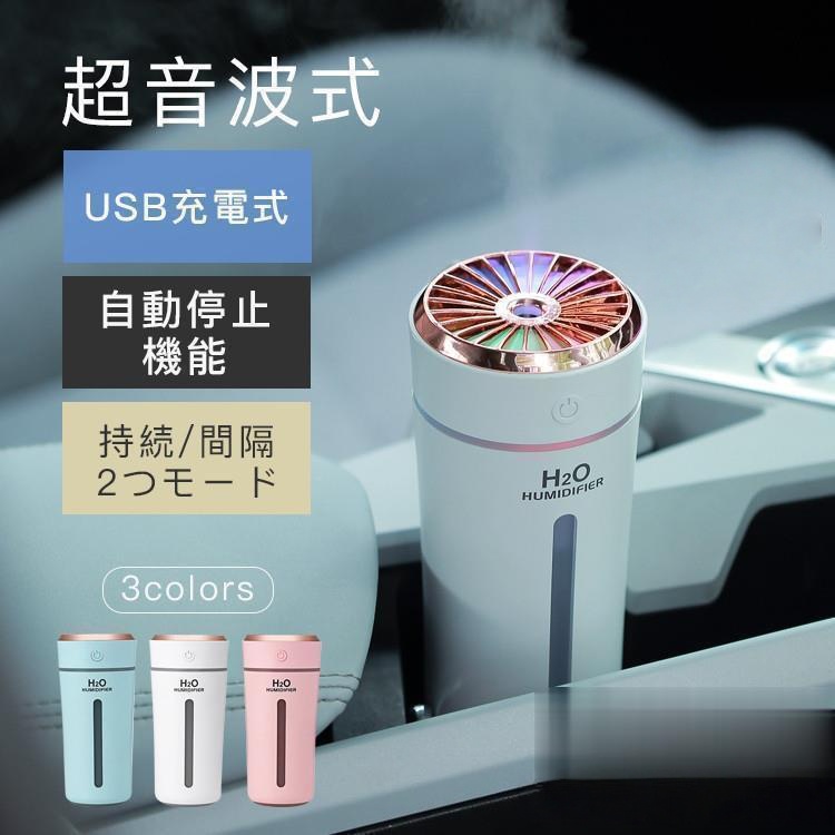 ■音波加湿器 加湿器 おしゃれ 270Mlタンク容量 USB 給電式 LEDライト付き 車載用 静音 省エネ 節電 エコ 持ち運び 卓上 小型