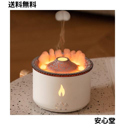 ■火山 加湿器 炎 アロマ 加湿器 卓上 超音波式 癒し 揺らぐ炎 8時間タイマー 360ml大容量 2色LEDライト 空焚き防止 上から給水 静音 乾燥