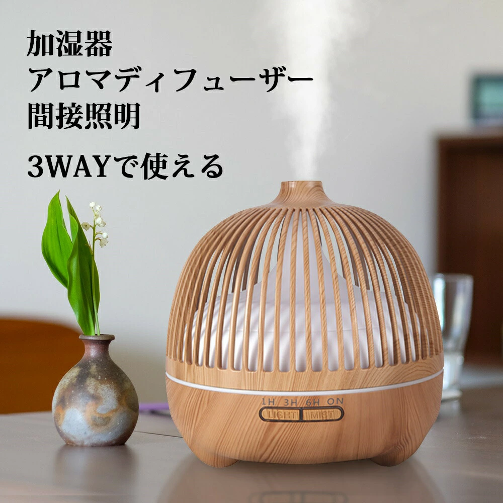 加湿器 卓上 アロマディフューザー LED 間接照明 超音波 上から給水 オフィス 小型 アロマ加湿器 ライト ランプ おしゃれ コンパクト ミニ 寝室 枕元 和室 和風 プレゼント お祝い ギフト 上部給水 お手入れ簡単 木目調 ナチュラル