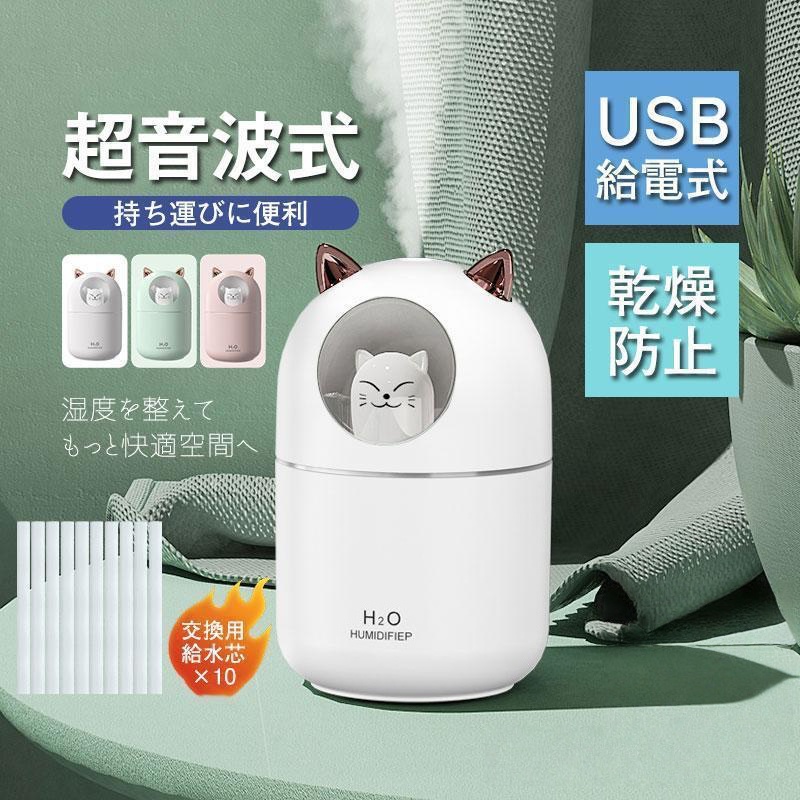 ■加湿器 USB給電式 ミニ加湿器 しずか 持ち運びに便利式 猫 卓上加湿器 アロマ対応 空焚き防止 乾燥防止 夜灯 おしゃれ