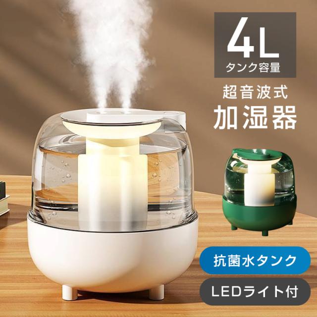 ■超音波加湿器 加湿器 卓上 4000ML 大容量 抗菌水タンク オート湿度コントロール 新生活 乾燥対策 LEDライト付き 卓上加湿器 オフィス 静