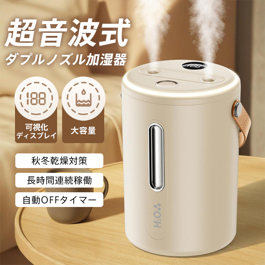 商品詳細: カラー:/ホワイト/ベージュ サイズ:/ワンサイズ ★検索キーワード:乾燥対策 気化式加湿器 湿度調整 車載 静音 オフィス 部屋 軽量 長時間連続稼働 家庭用 除菌 自動停止機能 自動OFFタイマー 細霧 静か 超静音 卓上加湿器 空気浄化 車用 空気清浄 寝室 事務室用 業務用 ミスト量3段階 省エネ 節電 エコ 空焚き防止 コンパクト 上から注水タイプ お手入れ簡単 加湿モード切替 ■商品説明 ◆ダブルミスト噴射口、効率的に加湿できる 2つのミスト噴霧口が細かいミストで素早くお部屋をうるおす、水が積もることがない超音波方式を採用しています。 ◆シンプルな3段階加湿モード 加湿能力:3段階(連続運転、間隔運転、相互間隔運転) ◆リアルタイムの湿度確認 湿度を検知するセンサーを搭載しており、お部屋の湿度が一目で分かります。 ◆1.3L大容量で一晩中ずっと潤う 1回の満タン給水で長時間加湿器できるから、たびたび給水の必要がありません。