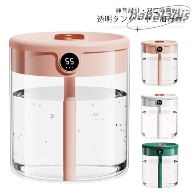 ■加湿器 超音波加湿器 大容量 2L 卓上 オフィス 小型 3つモード 卓上加湿器 双口ミスト ダブル噴霧口 USB給電式 10時間連続加湿 静音設計