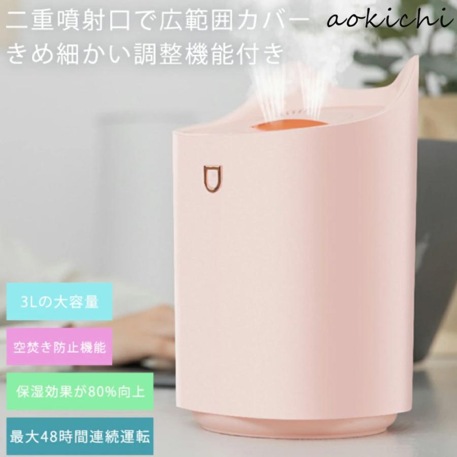 ■加湿器 ダブルノズル 超音波式 加湿器 連続30時間加湿 3L大容量 USB LEDライト付き 空焚き防止 乾燥 空気加湿機 上部給水 静音設計 軽量
