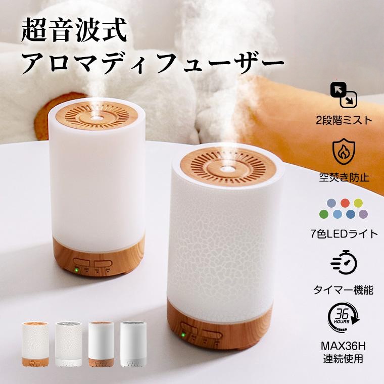 ■アロマディフューザー 加湿器 超音波式 静音 小型 アロマ対応 36H連続使用 空焚き防止 2段階モード 7色ライト