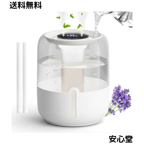 ◆商品名:超音波式 加湿器 大容量 4L 【2025新登場・上から給水・ダブル吹出口】パワフル加湿 3段階加湿量 湿度センサー 小型 かしつき 静音設計