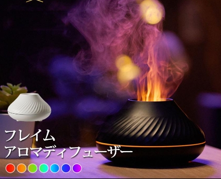■アロマディフューザー 加湿器 フレイム 炎 超音波式 アロマ 卓上 おしゃれ USB 小型 超音波