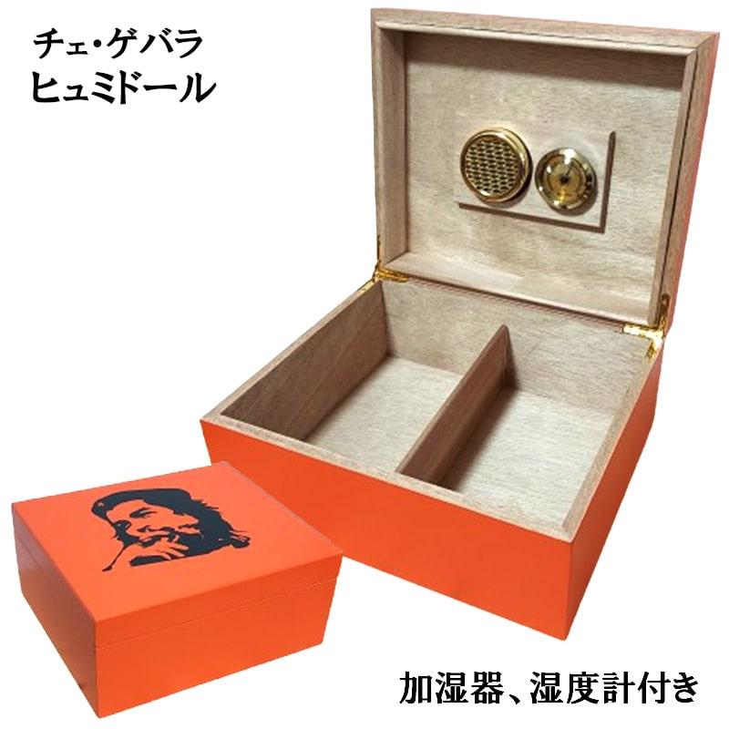 ■シガーボックス 加湿器 湿度計 ヒュミドール 葉巻 チェ・ゲバラ オレンジ おしゃれ 喫煙具 タバコ 高級 かっこいい 渋い たばこ フカシロ