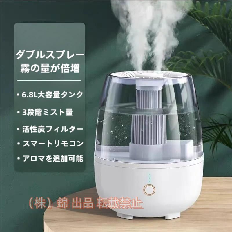 ■加湿器 小型 卓上 ダブルノズル 2L大容量 空気清浄機 アロマ対応 LEDライト 静音 3段階加湿モード 上部給水式 type-c充電式 乾燥 花粉症