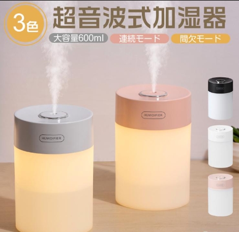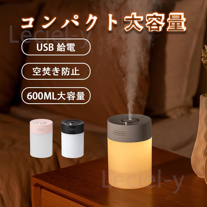 ■【10%超還元セレクト】加湿器 卓上 600ml 上から給水 超音波式 小型 LEDライト 空焚き防止6-10畳対応 連続加湿約18時間 コンパクト 省エ