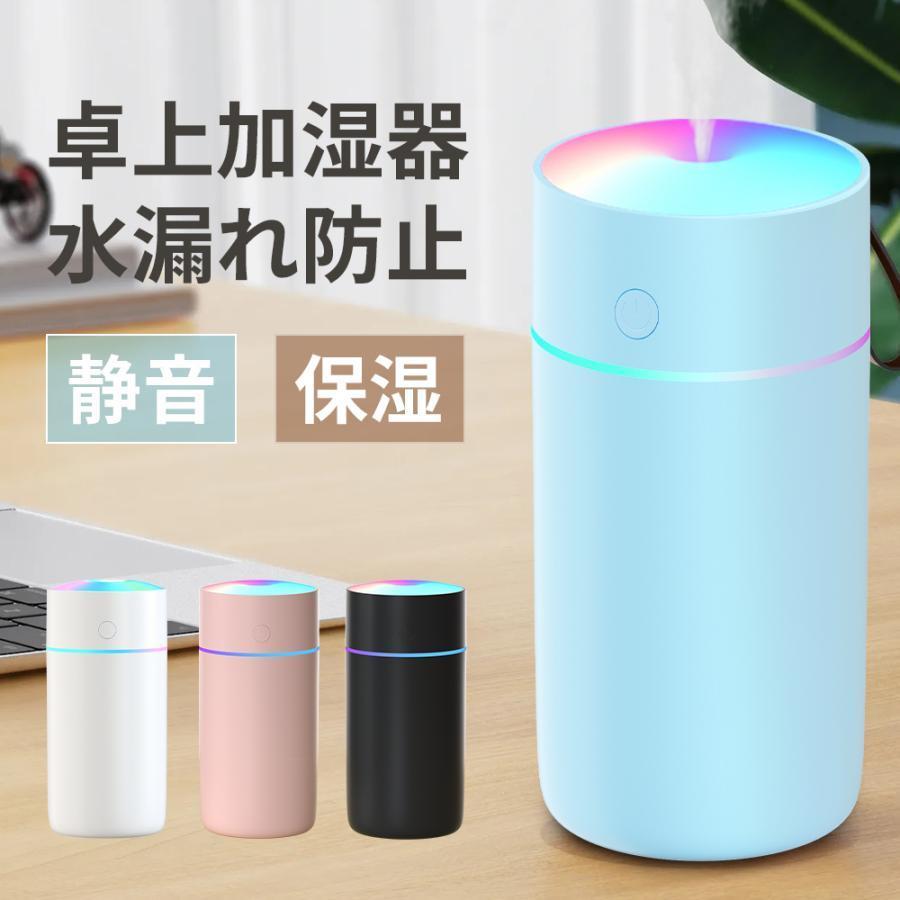 ■加湿器 卓上加湿器 超音波 アロマ対応 小型 乾燥対策 USB給電式 車載加湿器 2種類加湿モード 空焚き防止 七色LED 次亜塩素酸水対応 350ml