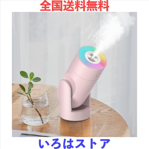 ■加湿器 おしゃれ 超音波式 首振り 角度調整可能 240ml 容量 卓上 小型 ペットボトル USB給電 LEDライト 連続加湿8時間 ミニサイズ 2種加