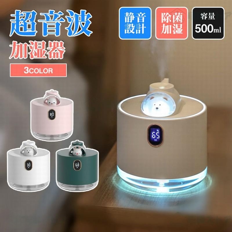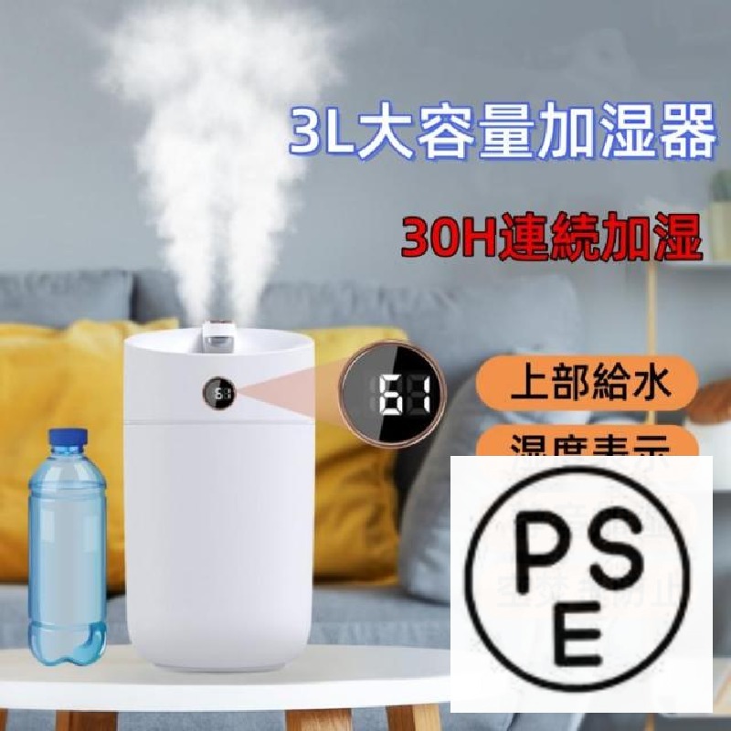■加湿器 超音波式 3L大容量 卓上加湿器 上部給水 湿度表示 お手入れ簡単 空焚き防止 30h連続加湿 静音 節電 省エネ コンパクト 寝室 USB充