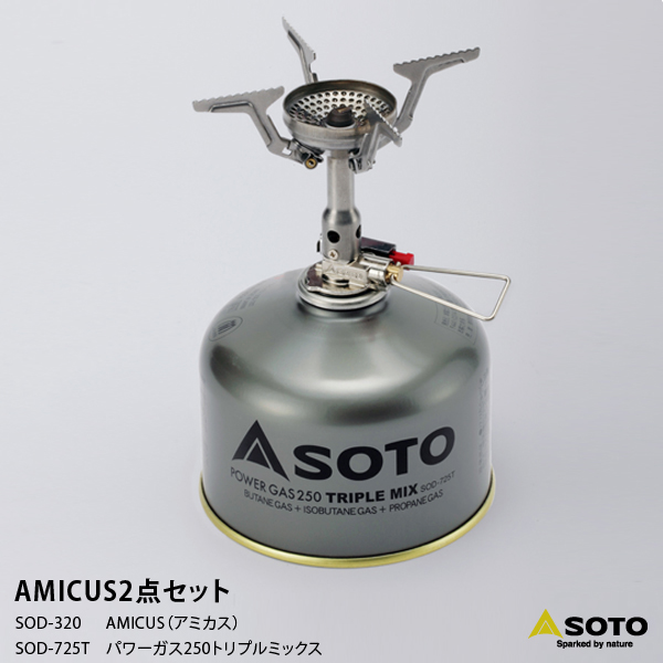 ■【◆P10倍】 SOTO ソト 新富士バーナー SOD-320 AMICUS アミカス 2点セット (AMICUS、パワーガス250トリプルミックス) シングル ストーブ