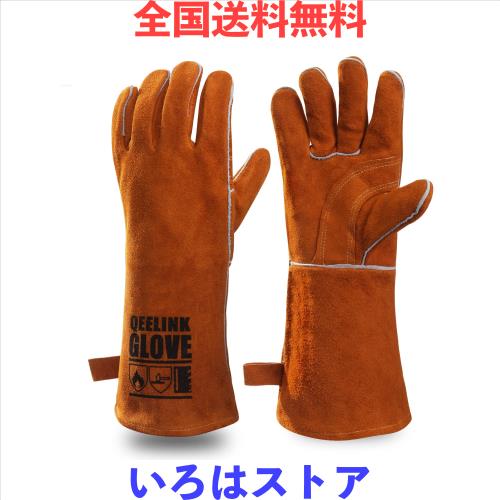 ■[QeeLink] 耐熱グローブ 本革 牛革 手袋 キャンプグローブ 耐熱 防火手袋 溶接/BBQ/ストーブ/焚き火台/薪ストーブ アウトドア用 作業革手