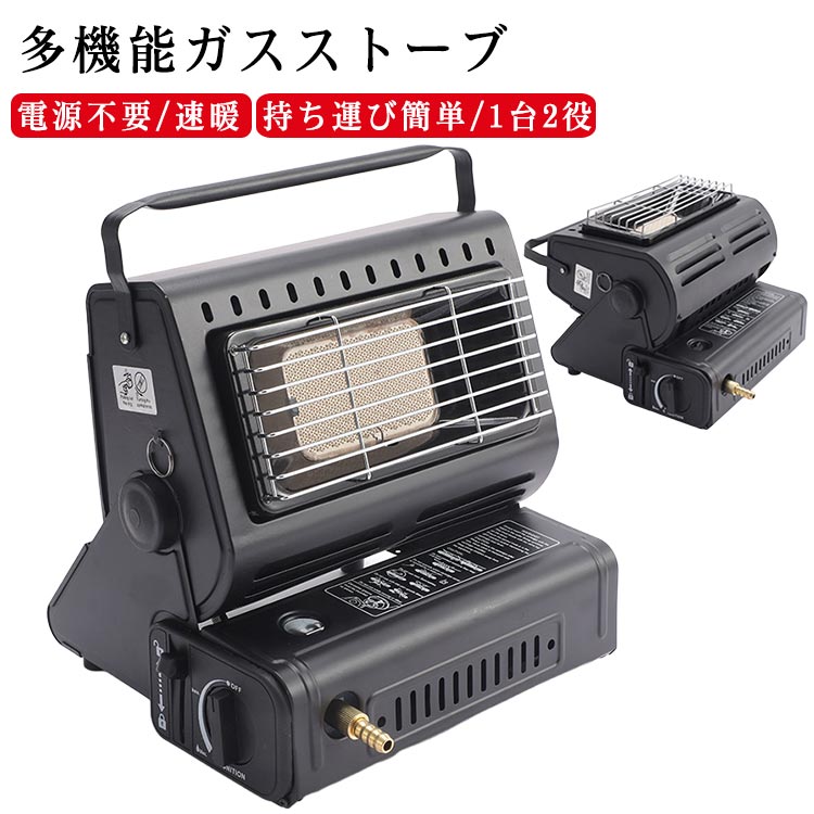 ■ストーブ アウトドア 軽量型 速暖 カセットガスストーブ ガスファンヒーター 火力調節可能 1台2役 キャンプ用品 多機能ガスストーブ 小型