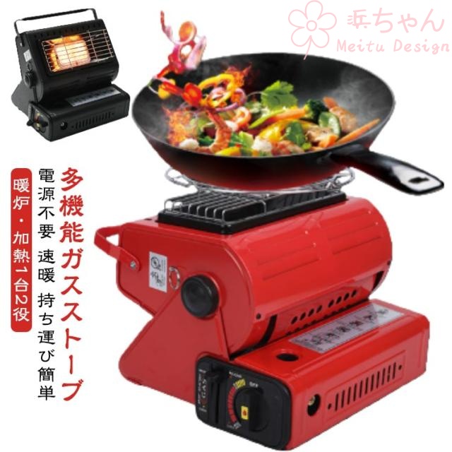 ガスファンヒーター 暖房器具 ストーブ アウトドア キャンプ 小型 ヒーター 軽量型 暖房器具 カセットガスストーブ ガスヒーター ガスストーブ 火力調節可能 多機能ガスストーブ 電源不要 速暖 1台2役 持ち運び簡単 釣り キャンプ用品 屋外屋内専用