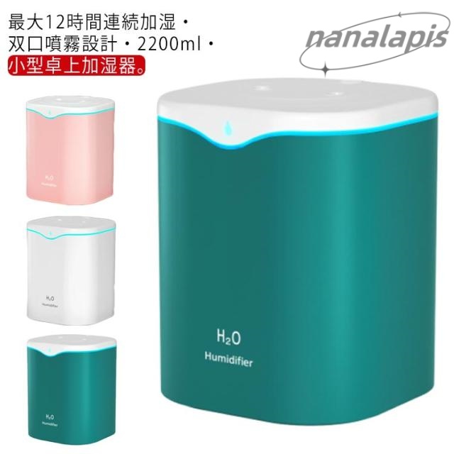 加湿器 卓上加湿器 卓上 オフィス 小型 双口ミスト ダブル噴霧口 USB給電式 大容量 2200ML 12時間連続加湿 静音設計 超音波式 空気清浄機 乾燥対策 かわいい エコ シンプル 上部給水 おしゃれ 省エネ LEDライト 会社 家庭用 リビング 部屋