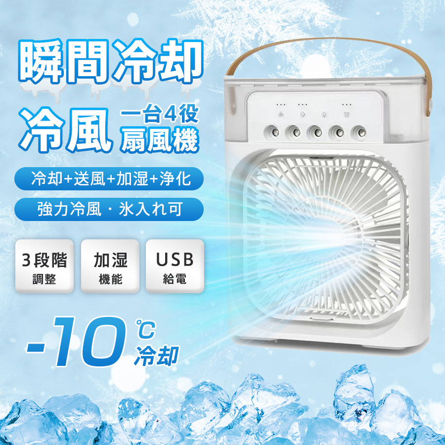 ■冷風機 冷風扇 小型 卓上クーラー 扇風機 強力送風 3段階調整 冷却 タイマー機能 加湿 600ML大容量 氷入れ可