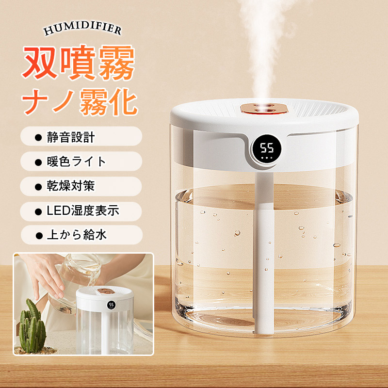 基本仕様サイズ 142.5×98mm重量 約230g電源 DC5V 1A消費電力(約) 2W加湿能力(約) 最大30~40ml/hタンク容量(約) 500ml推奨面積(約) 2?6畳付属品 電源コード×1、取扱説明書×1検索用キーワード:加湿器 大容量 ハイブリッド ハイブリッド式加湿器500ml 加湿器 加湿器 大容量 最新型 卓上加湿器 上から注水タイプ 静音 かしつき お手入れ簡単 空焚き防止機能付き手軽 乾燥対策 置き場所 床置き 事務所 オフィス 部屋 学校 幼稚園 家庭用 会社 乾燥対策 お肌 保湿 効果 空焚き防止 UVライト UV 除菌ライト シンプル ホワイト 乾燥肌 不眠 鼻詰まり 空焚き防止機能 上から注水 ミスト濡れない 空気清浄機 一人暮らし おすすめ おしゃれ 人気 電気代 省エネ 実感 秋冬用 加湿器 加熱式 加湿器 大型 業務用加湿器 アロマディフューザー 加湿器 寝室 アロマ加湿器 お歳暮 2023 引越し祝い 新居 バレンタイン バレンタインデー ホワイトデー 母の日 父の日 敬老の日 クリスマス 誕生日 還暦祝い お祝い ギフト プレゼント卓