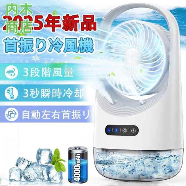 ポータブルエアコン 空気清浄 冷風機 氷 卓上扇風機 冷風扇 自動首振り 小型 卓上 USB充電式 静音 ミニクーラー 2025最新型 強力 3段階風量 加湿 扇風機