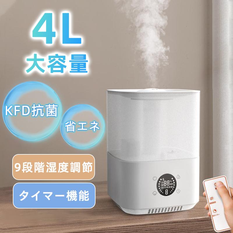 加湿器 超音波式 空気清浄機 4L大容量 3段階 ハイブリッド 省エネ 除菌 加湿機 卓上 上部給水 オフィス 家庭用 静音 除菌 アロマ対応 リモコン付き