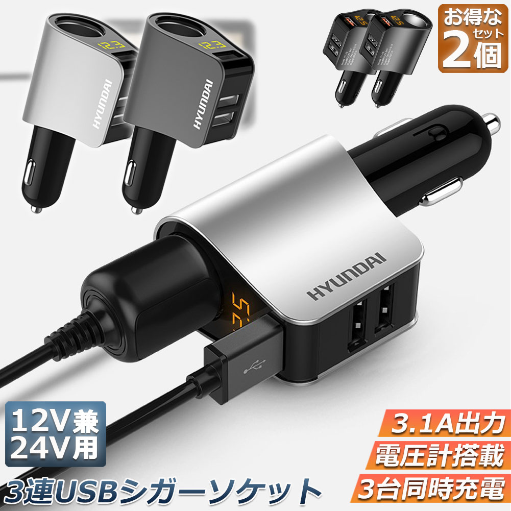 ■カーチャージャー 2個セット シガーソケット 3ポート 急速充電 usb 3口 3.1A急速充電 12V 24V 電圧計 iPhone Android iPad Galaxy用 カー