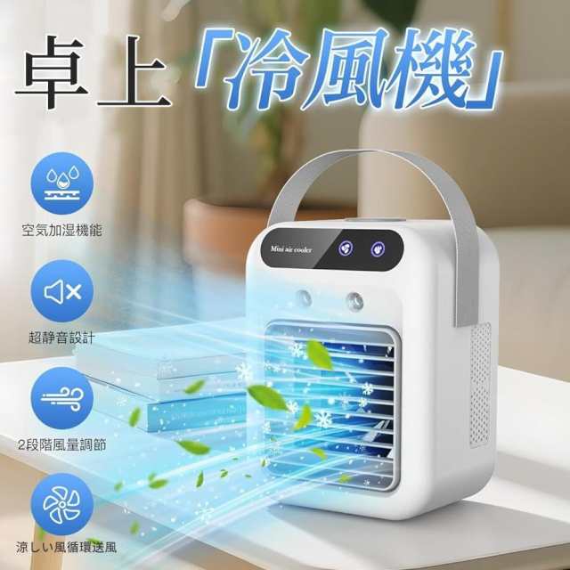 ■2025新商品 冷風機 冷風扇 卓上クーラー 小型 ミニエアコン 500ML大容量 上下角度調整 2段階風量 超音波式ミスト 加湿 送風 冷却 空気清
