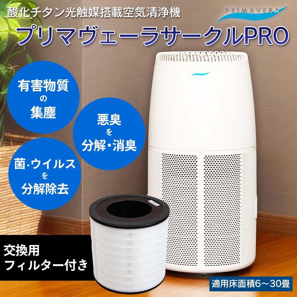■空気清浄機 プリマヴェーラ サークル PRO 【今なら交換用フィルタープレゼント】適用床面積30畳 酸化チタン光触媒搭載 花粉 PM2.5 対策