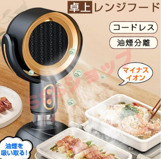 ■卓上レンジフード 換気扇 コードレス 小型 レンジフード 卓上吸煙機 テーブル換気扇 低騒音 2段階風量調節 空気清浄機 マイナスイオン 卓