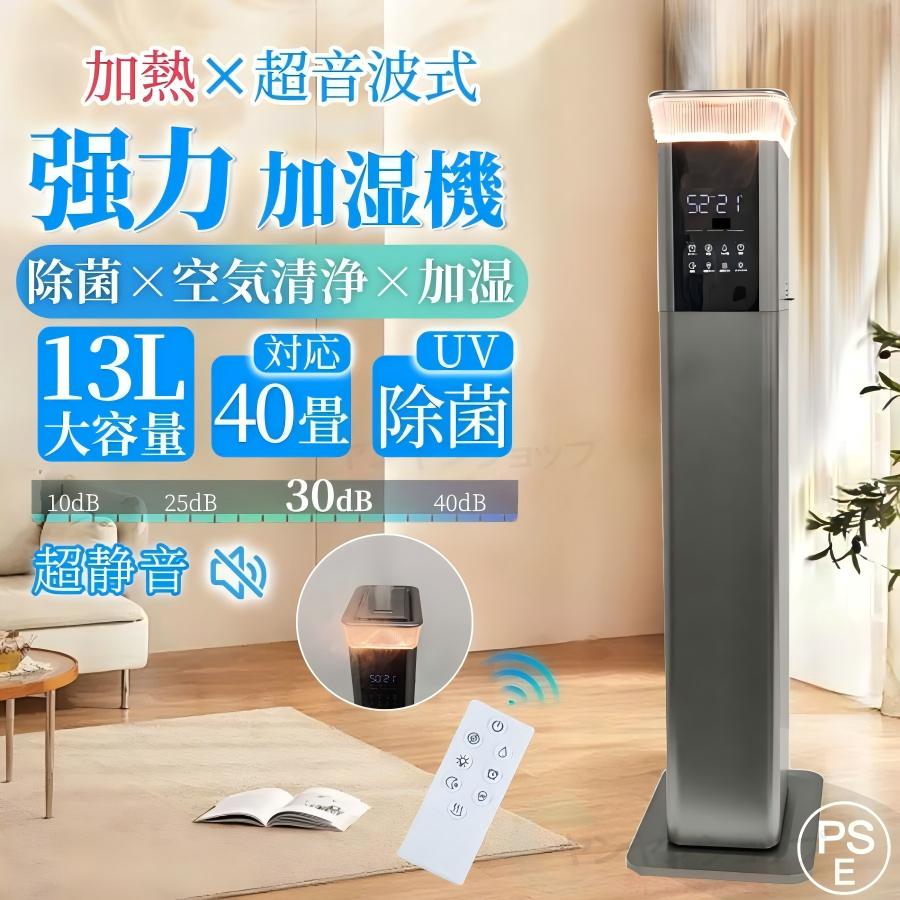 ■加湿器 大容量 13L 超音波 スチーム式 加熱 空気清浄機 20畳 30畳 40畳 UV除菌 湿度センサー 上から給水 お手入れ簡単 静音 リモコン付き