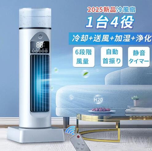 ■冷風扇 小型 冷風機 卓上 扇風機 超音波式 羽なし 加湿 空気清浄 自動首振り 省エネ 静音 氷入れ可 ミニクーラー 6段階風量 タイマー リ