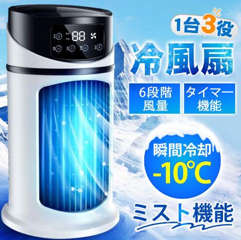 ■【タイムセール】冷風扇 冷風機 卓上 コンパクト 氷 冷却 加湿 静音 6段階風量 タイマ一機能 小型 USB給電 ポータブルエアコン 扇風機 ミ