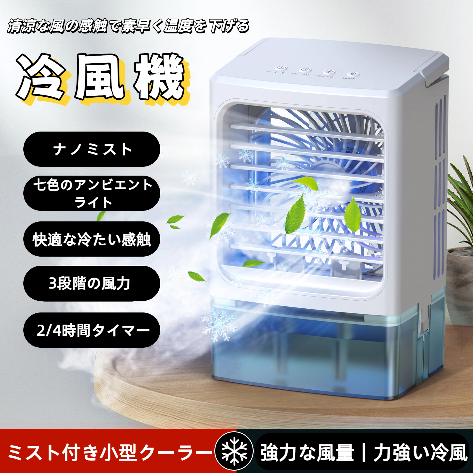 ■【15%クーポン配布中】冷風機 小型 1L 大容量タンク 冷風扇 -12℃冷却 4WAYデザイン 最大風量10m/s 冷風扇風機 省エネ 3段階風量調整 2種