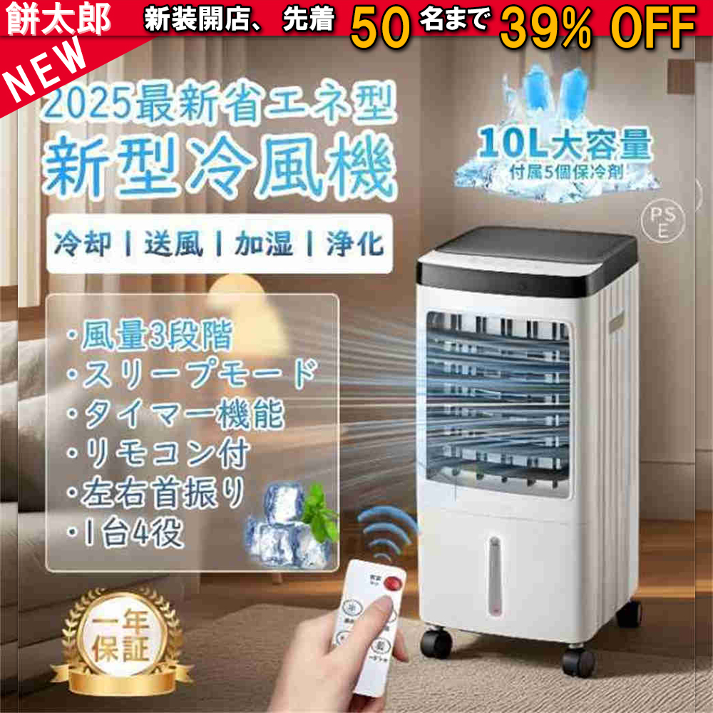 ■冷風機 羽なし 小型 強力 サーキュレーター 空気清浄機 冷風扇 一台四役 上下左右首振り 10L大容量 氷入れ 静音 涼しい 1秒冷却 移動式エ