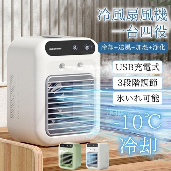 扇風機 冷風機 冷風扇 卓上冷風機 卓上クーラー USB給電式 加湿機能 小型 携帯冷風機 強風 コンパクト 省エネ 3段階調整 熱中症 暑さ対策