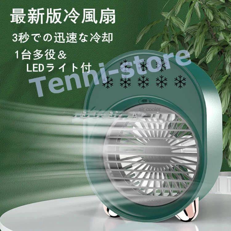 ■冷風機 冷風扇 1台4役 卓上 加湿器 扇風機 冷風扇 強力送風 小型 静音 USB 充電式 上下角度調整 2段階噴霧量 氷いれ可能 ミニエアコ