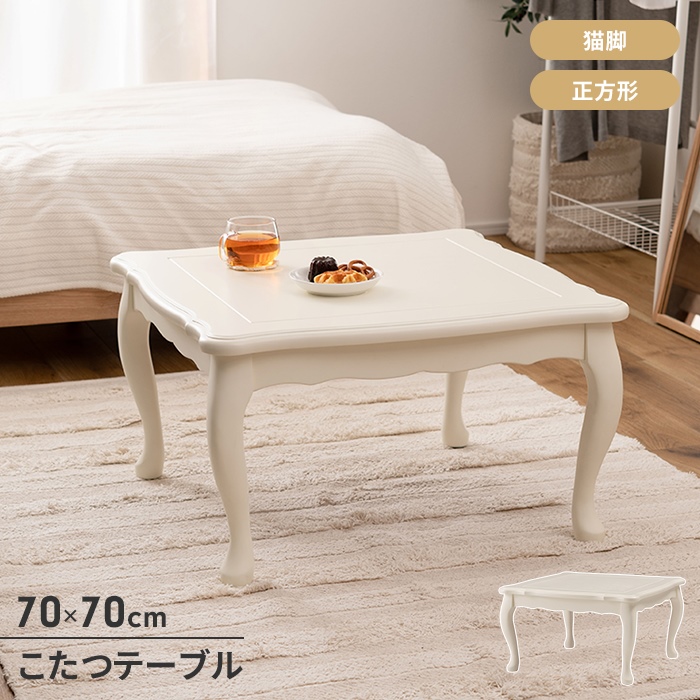 ■【値下げ】こたつテーブル こたつ 猫脚 天然木 正方形 幅70 センターテーブル 単品 オールシーズン 300W 石英管ヒーター ナチュラル