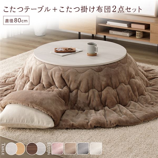 ■こたつ セット 2点セット 〔 こたつテーブル :ホワイトウォッシュ/ナチュラル こたつ布団 :ベージュ 〕 円形 約直径80cm 【北海道・沖