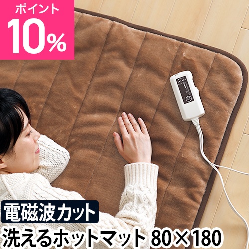 ふっくら柔らかな触り心地。安心の電磁波99%カット!■サイズ約縦180×横80cm■重量約2.8kg(コントローラー含む)■素材アクリル100%、ポリエステル100%■電源 交流100V 50/60Hz 75W■保証期間 保証1年■付属品保証書付き取扱説明書、コントローラー■注意■保管には圧縮袋は使用不可。■乳幼児、自分で温度調節出来ない方は付き添いなしでは使用不可。■「強」目盛りで長時間使用不可。■丸めたり体に巻きつけて使用不可。■連続使用のときなどは、1日1回必ずマットを広げ直してください。■犬や猫などの暖房用には使用不可。■交流100V以外では使用不可。■アイロン台として使用不可。■室温が高いとき弱近くでは通電しないことがあります。■使用中は必ずコントローラーはマットの外に置いてください。また、他の電熱帯から離してください。パッケージは予告なく変更になる場合がございます。ご了承ください。