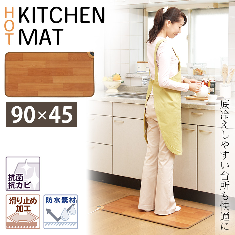 ■キッチンマット 防水 NA-151KM 90cm 省エネ ホットマット おしゃれ ホットカーペット テーブル下マット 足元 ヒーター 木目調 フローリン