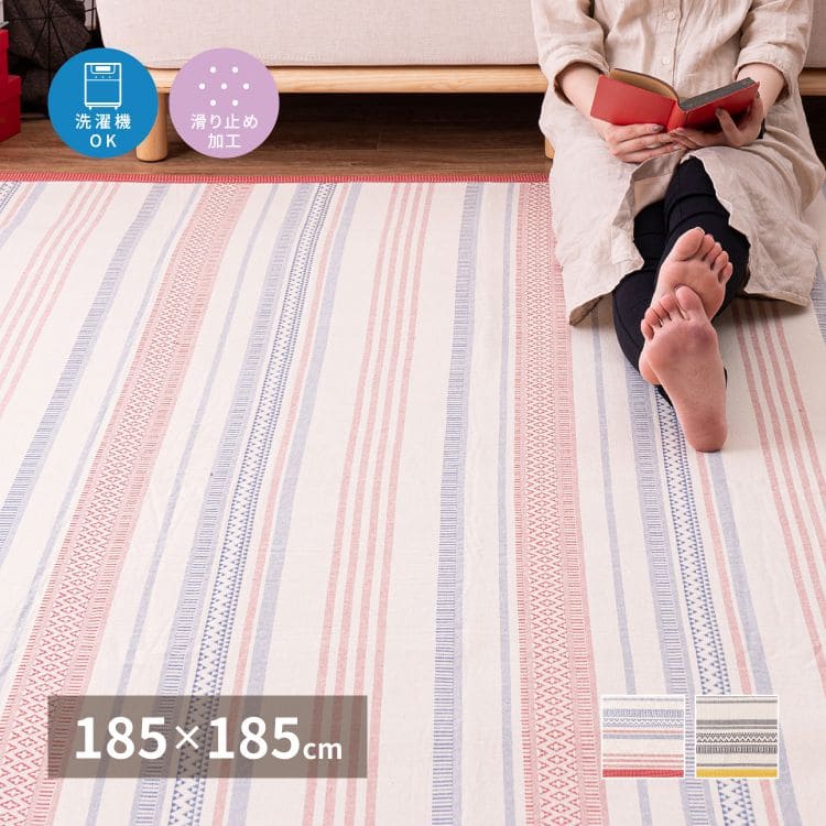 ■ラグ カーペット 2畳 コットン インド綿 天然素材 滑り止め 冬 洗える 洗濯機 冬用 おしゃれ 床暖房 ホットカーペット 正方形 タッセル