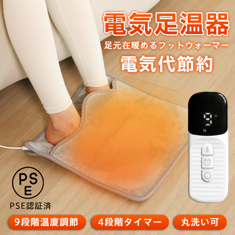 ■フットウォーマー 足温器 コンセント 電気足温器 足元ヒーター ホットカーペット 過熱保護 9段階温度調整 タイマー機能 冷え対策