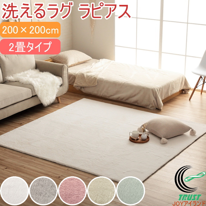 ■洗えるラグ ラピアス 2畳 200×200cm 送料無料 フェイクファー 抗菌 防臭 手洗い可 ホットカーペット 滑り止め 床暖房