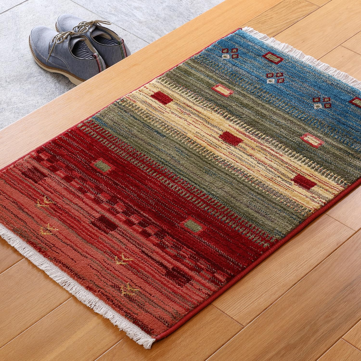 ■萩原 ウィルトン織 玄関マット 屋内 約50×80cm RAKKAS トワル ギャッベ柄 民族柄 ホットカーペット・床暖房対応