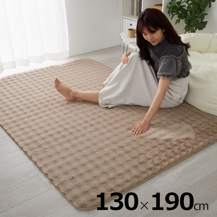 ■【ホットカーペット/床暖房対応】ラグ ラグマット 130x190cm ワッフルファー 4色対応 カーペット 長方形 1.5畳 絨毯 おしゃれ こたつ敷き