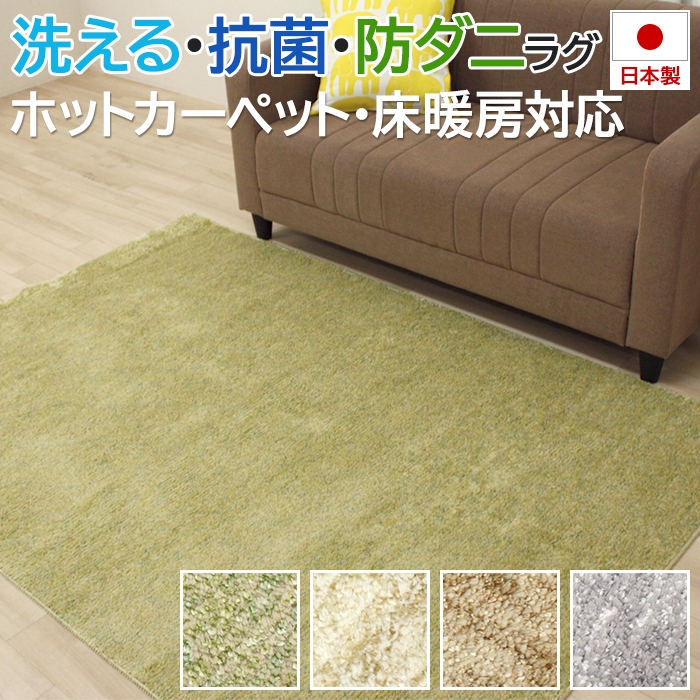 ※販売者情報を必ずご確認下さい。【数量限定】長めの毛足が気持ちいい♪おしゃれな機能性ラグ。抗菌・防ダニ基布を使用しているので、お子様やペットと暮らすご家庭におすすめ。万が一汚れてしまった場合も、手洗いできます。ホットカーペットや床暖房の上で使用できるので、オールシーズン大活躍!裏面は床を傷つけにくい不織布加工。(滑り止めは付いていません)安心の日本製カーペット。在庫処分の為、お値打ち価格でご提供!■サイズ:約130×190cm■素材:ナイロン50%、ポリエステル30%、ポリプロピレン20%■パイル長:約15-6mm■全厚:約6.5mm■機能:手洗いOK、抗菌、防ダニ、ホットカーペット・床暖房対応■その他:日本製■カラー:グリーン、アイボリー、ベージュ、グレー※毛の向きによって、色が濃く見えたり、薄く見えることがございます。
